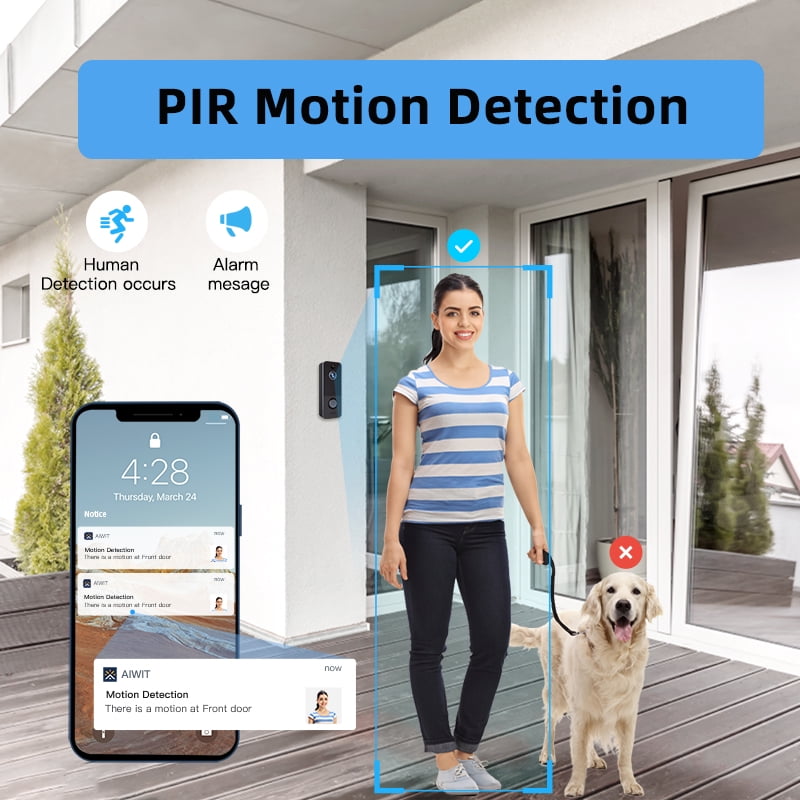 - Wire-Free & Rechargeable Batteries Included:This doorbell camera wireless connects to 2.4G Wi-Fi (5G Wi-Fi not supported), and uses rechargeable batteries for power. Such wire-free design saves you from cable hassle, and you can just mount it any spot you like. The Aiwit App is available in Google Play/App Store. Take only a few minutes, then you can easily set the door camera up in Aiwit App and mount it up at door.