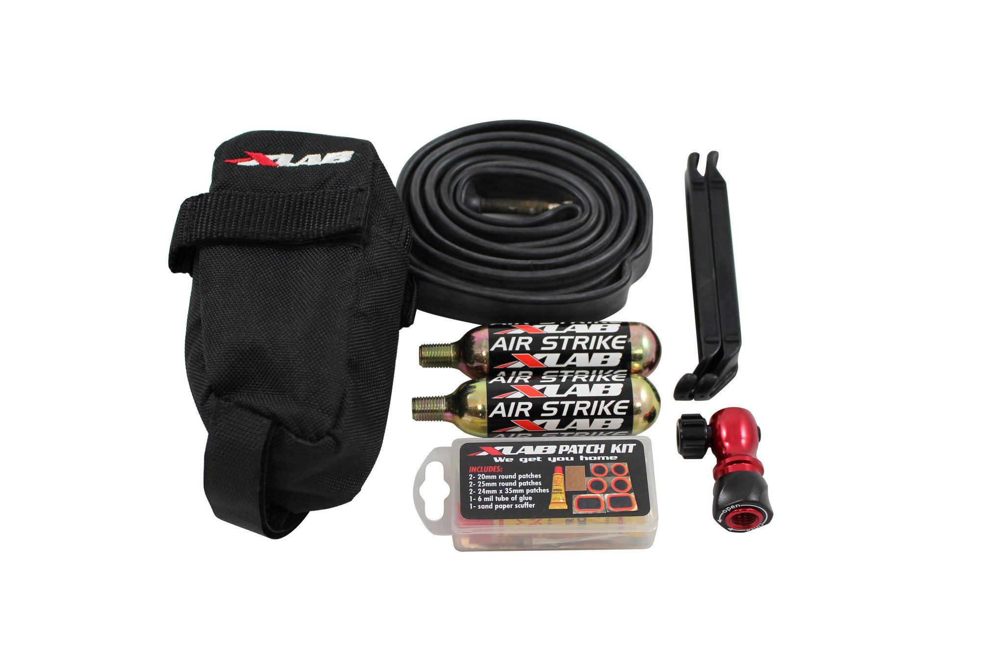 - Capacity to carry 2 CO2 cylinders, inflator, pair of tire levers, patch kit, and a mini tool kit