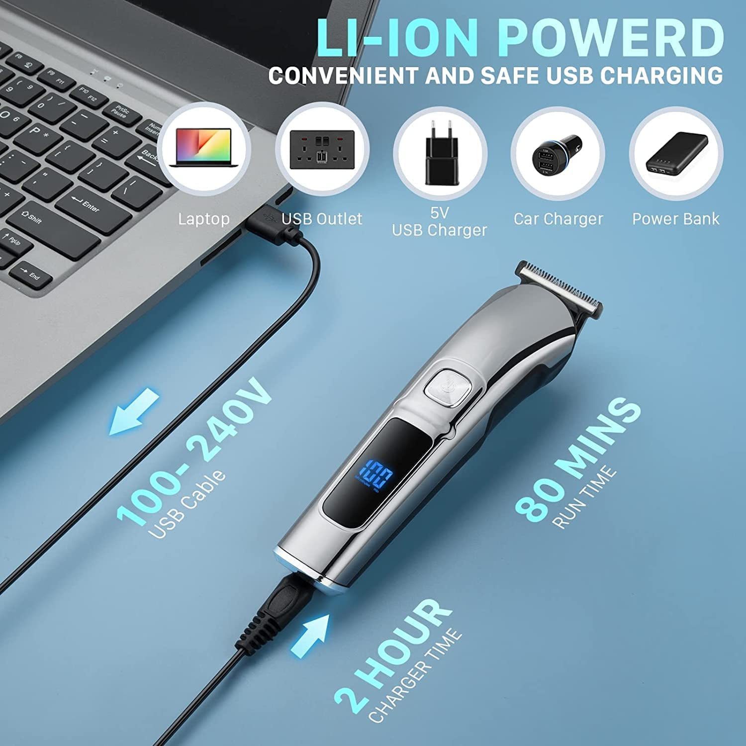 - LCD Display Hair Clippers: Battery capacity(charging state of the battery is displayed in percent)/Lock Symbol