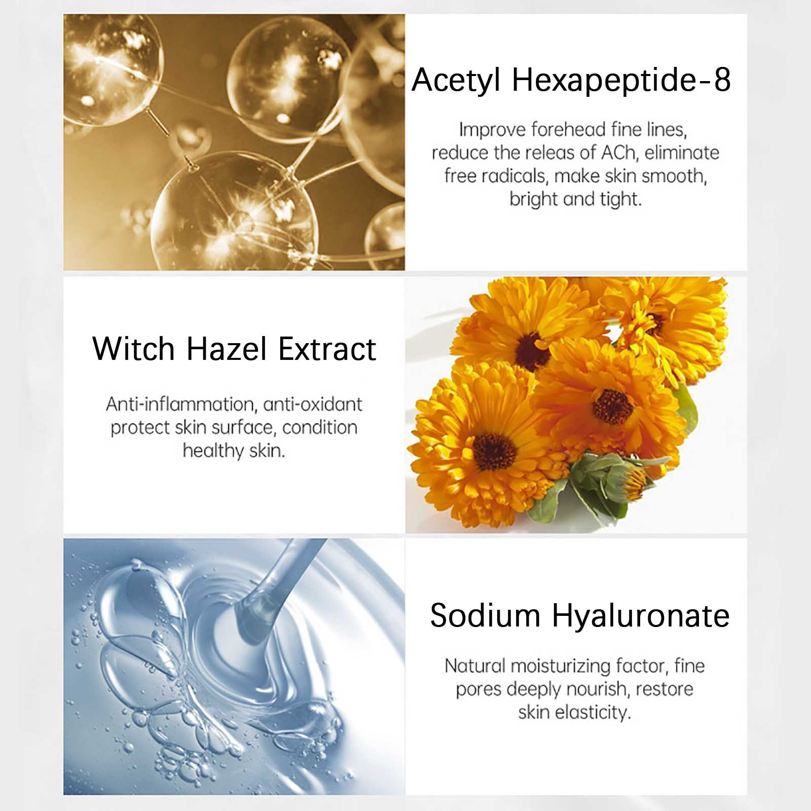 Adopts natural ingredients that are mild, cool, pleasant and without stimulation to your skin. It can help to improve the forehead lines, toning, moisturizing and repairing your skin, this makes your charming and young