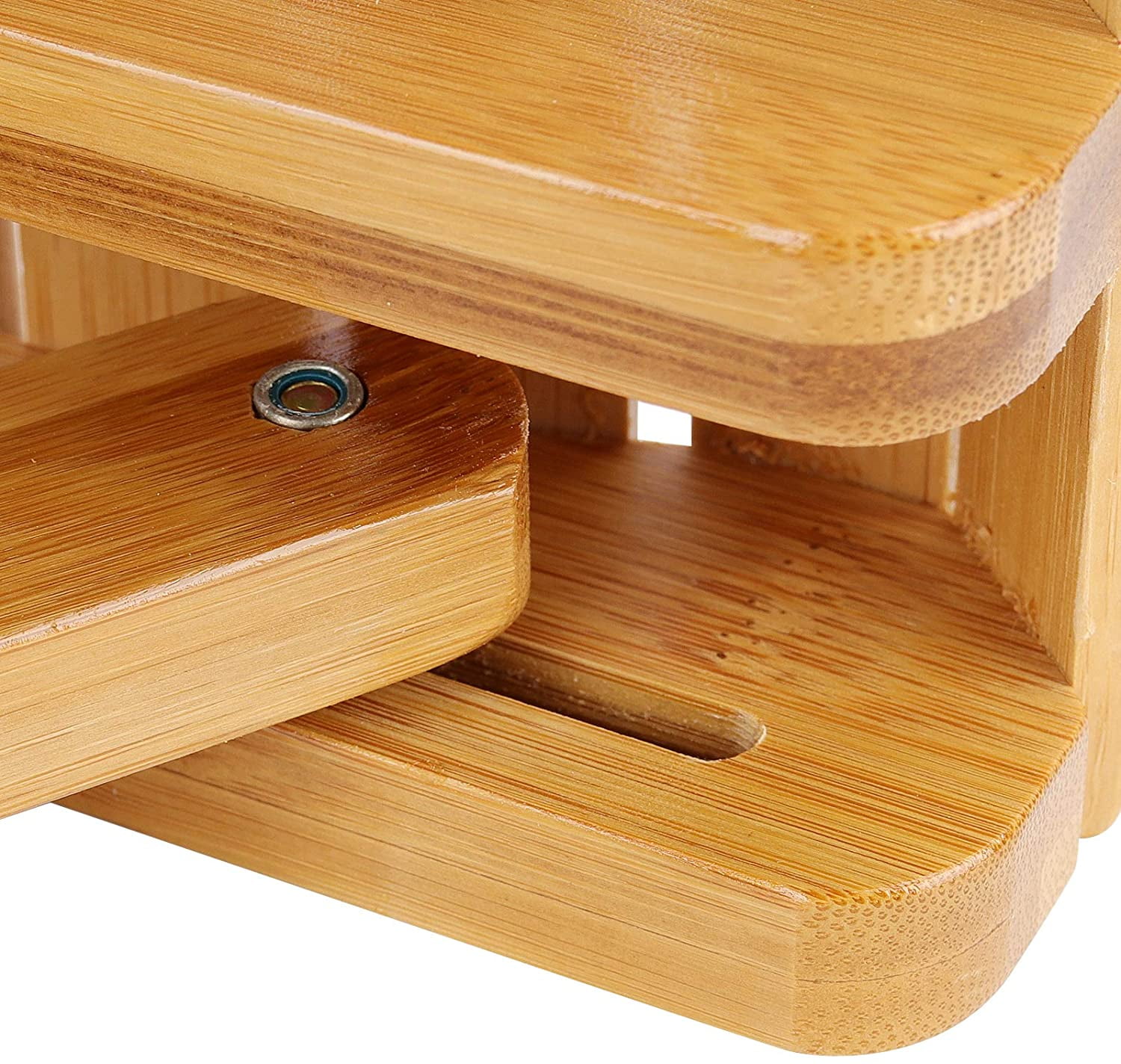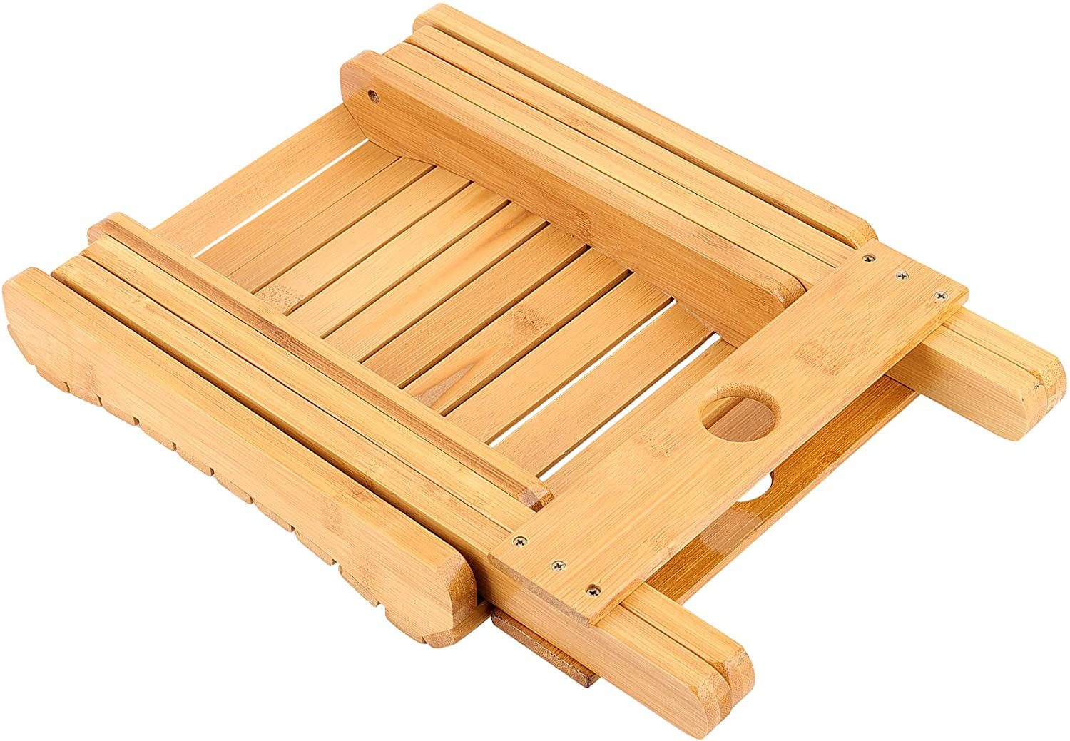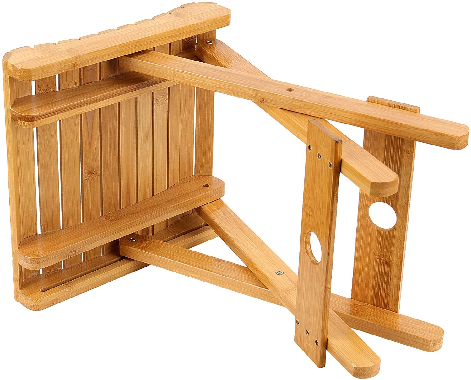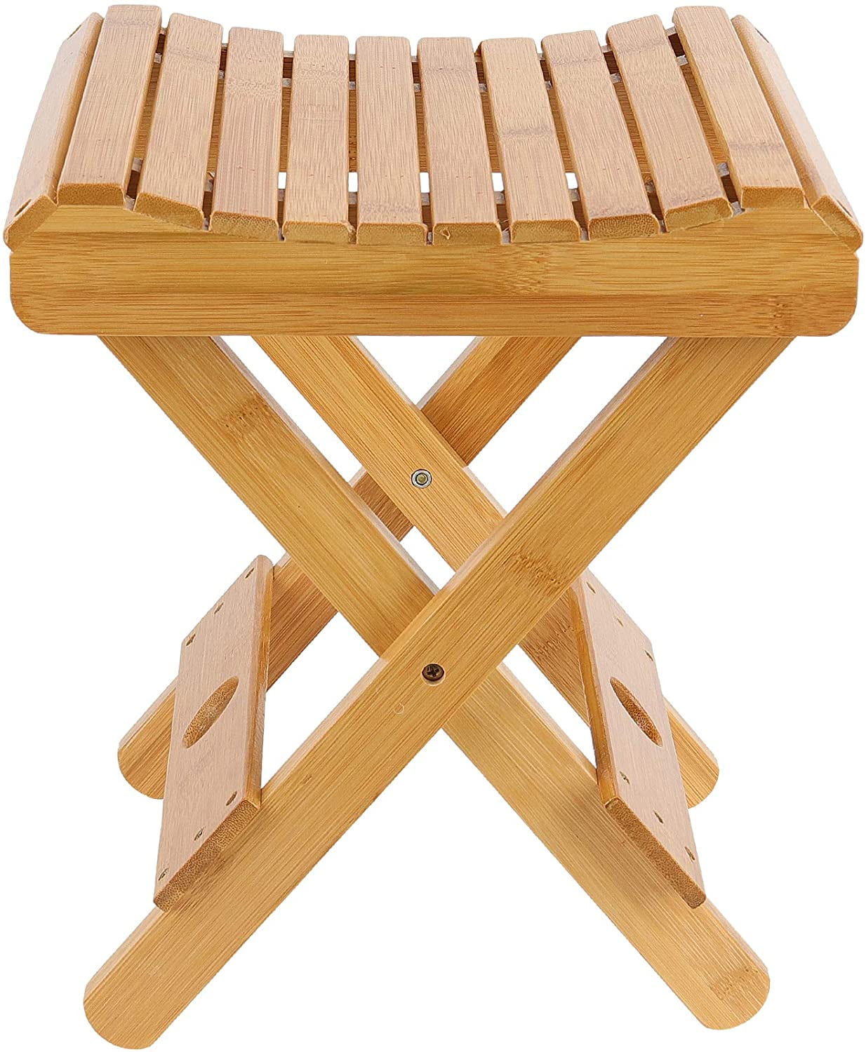MULTIFUNCTIONAL USES – The bamboo folding stool for foot rest can be used in various places, very suitable for shower, spa, sauna, shaving, footrest, lawn, balcony, travel, fishing and so on.