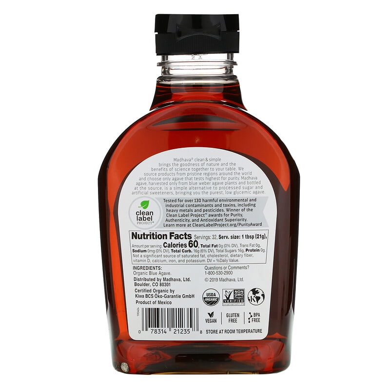 Madhava Natural Sweeteners, Organic Amber Raw Blue Agave, 23.5 oz Pack of 2