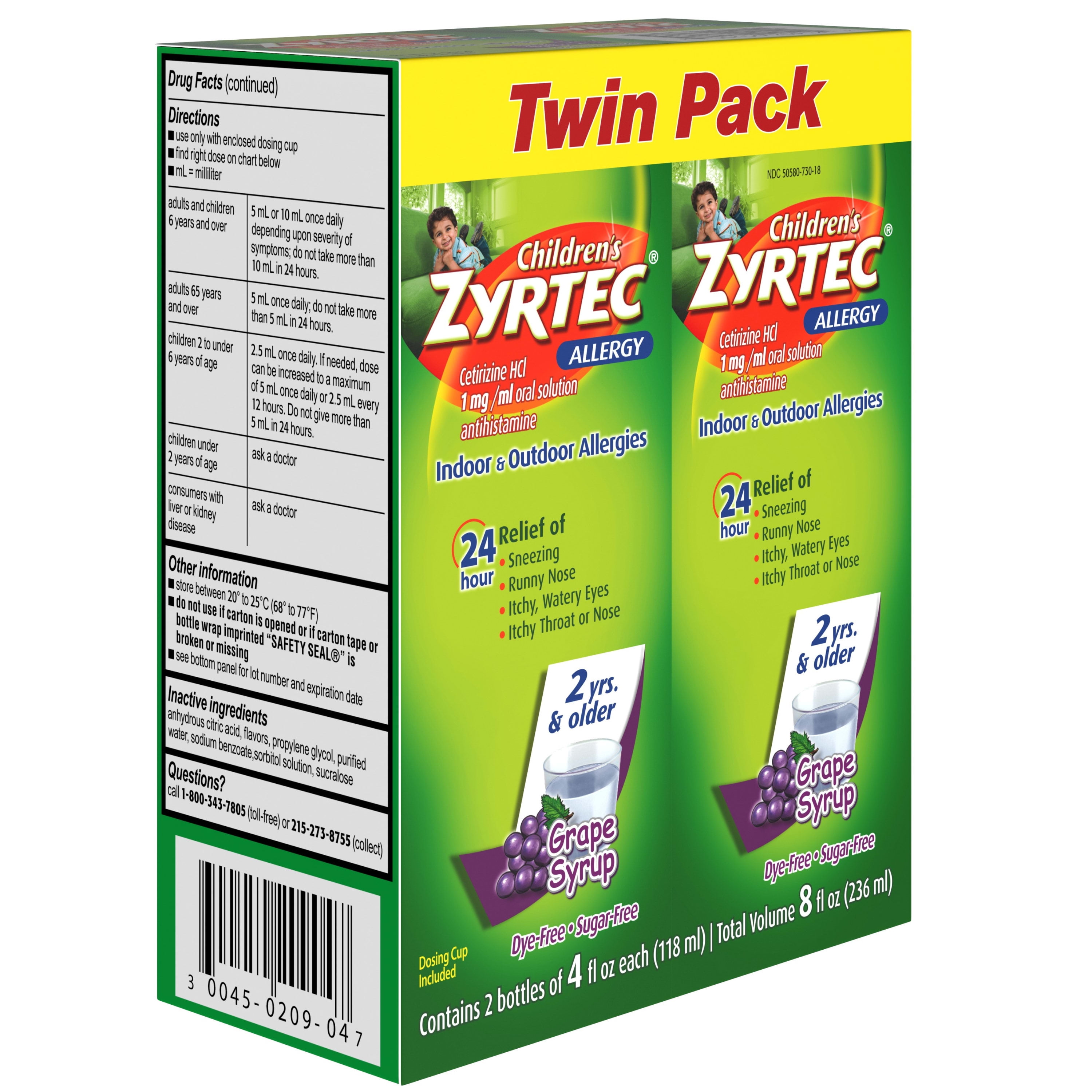 Zyrtec 24 Hr Children’s Allergy Syrup, Grape, Twin Pack of 4 fl. oz