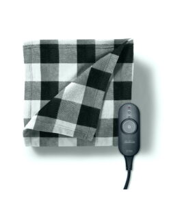 Sunbeam Electric Blanket Throw Fleece (50′ x 60′), Black/White Plaid