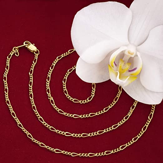 1.5mm Figaro Chain Necklace Women and Men 24k Real Gold Plated