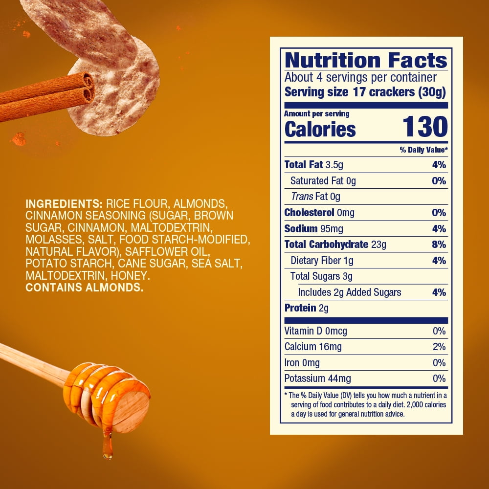 Blue Diamond Almonds Nut-Thins Honey Cinnamon Rice Cracker Snacks with Almonds, 4.25 oz
